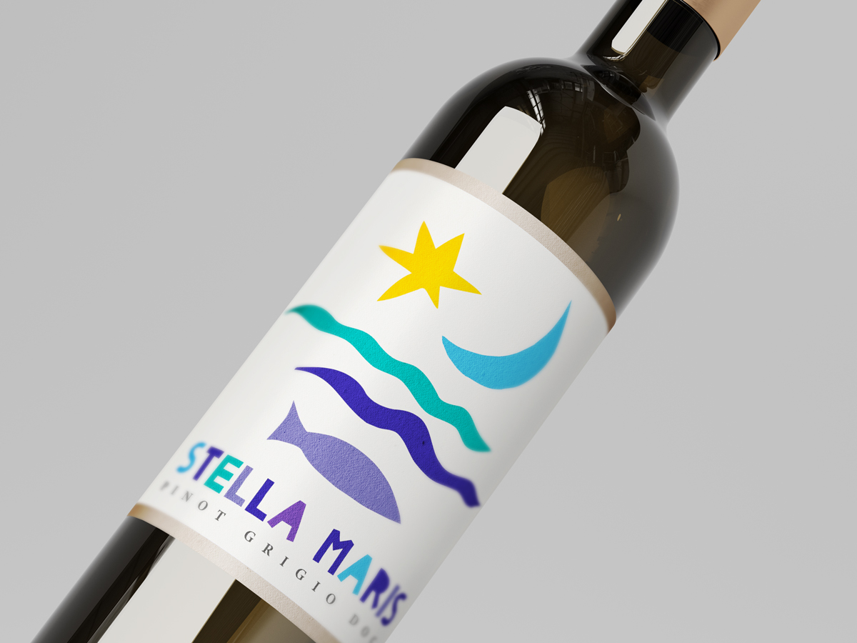 Für das Restaurant Stella Maris (Stern des Meeres) wurde eine personalisierte Etiketten-Gestaltung für die hauseigenen Weinsorten Pinot Noir und Pinot Grigio realisiert. Ziel war es, ein Design zu schaffen, das die maritime Identität des Restaurants auf elegante Weise widerspiegelt und die Weine als exklusive Hausmarken hervorhebt.